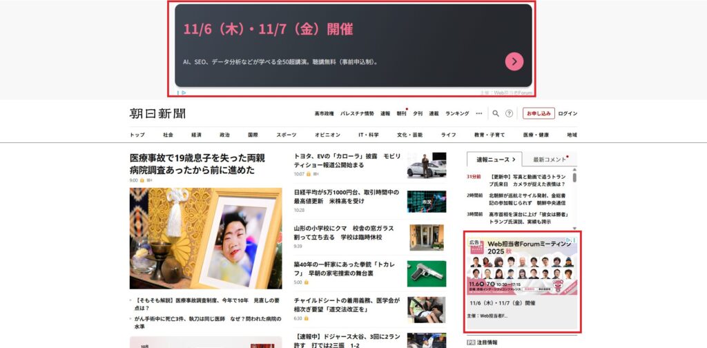 ディスプレイ広告は、Webサイトやアプリ、YouTubeなどのコンテンツ面に表示されます。